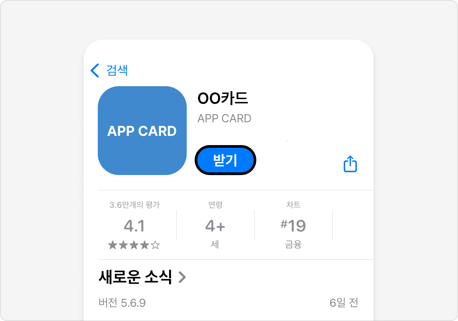 STEP 1. 구글플레이스토어 또는 앱스토어에서 결제하고자 하는 카드사의 앱카드를 다운 받습니다.