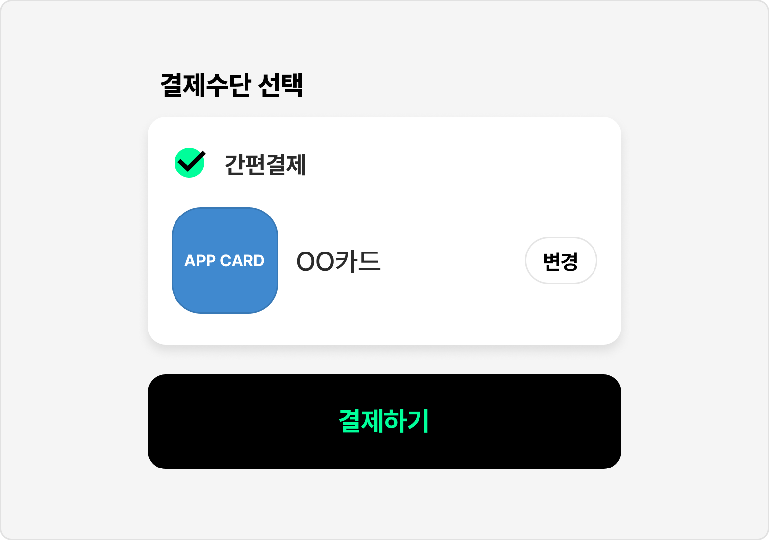 앱 카드가 미리 등록되어 있는 경우 바로 결제가 가능합니다.