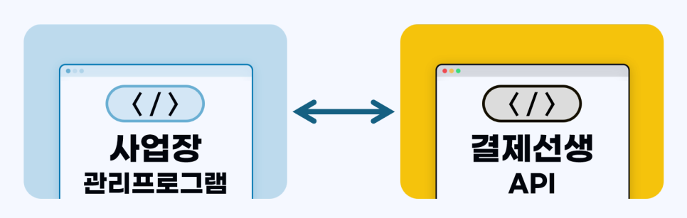 즉, 사업장의 프로그램 따로 결제선생 따로가 아닌 기존 사용중인 사업장의 관리프로그램에 결제선생 기능을 통합할 수 있습니다. 바로 결제선생 API연동을 통해서 입니다.