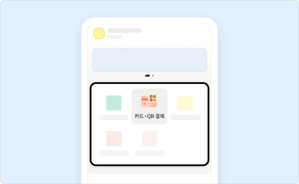 1️⃣ 홈 에서 카드·QR결제 퀵메뉴를 선택해 주세요.