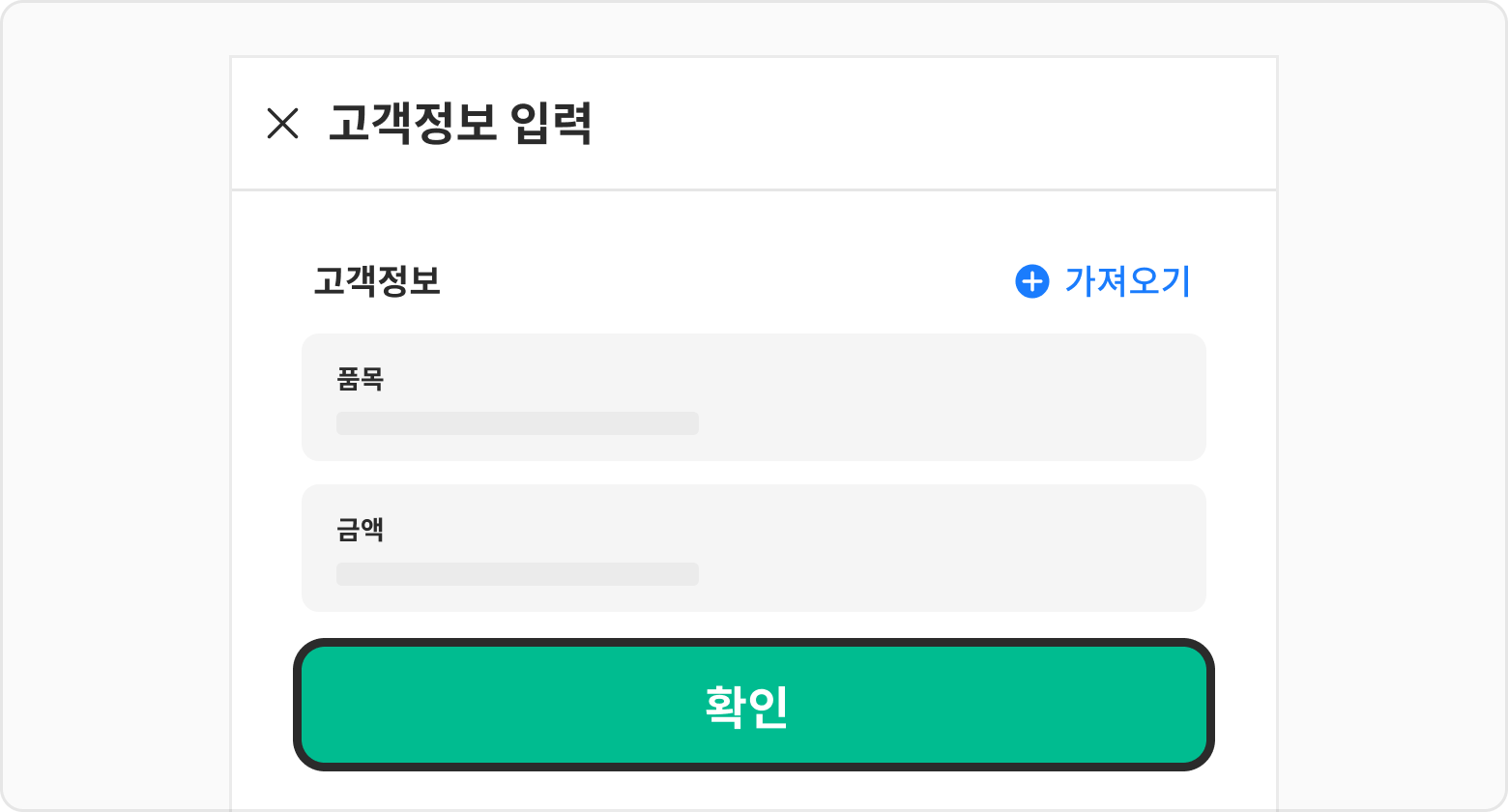 고객정보, 품목정보 우측 상단에 있는 입력 버튼을 클릭해 주세요.