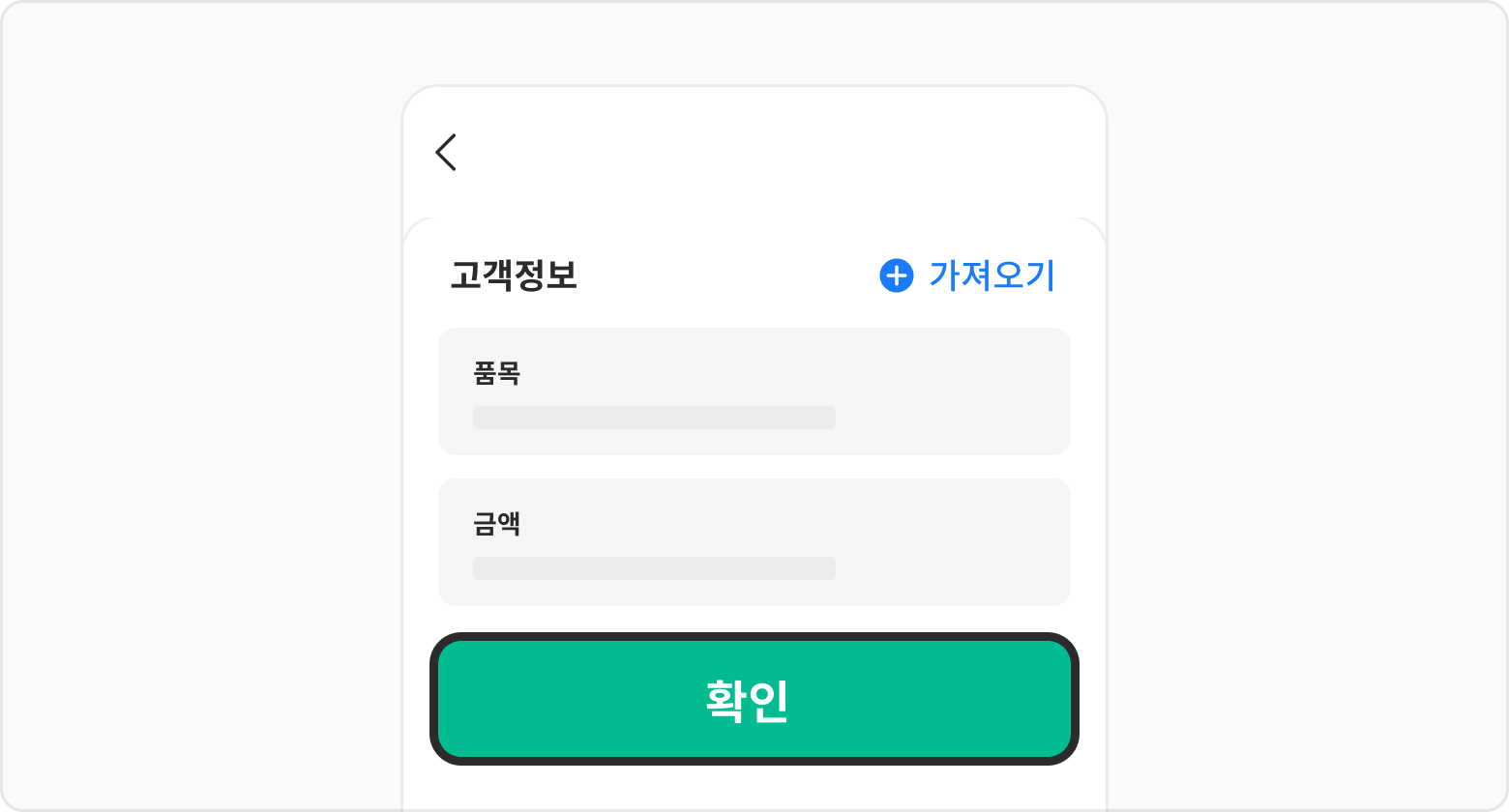 확인버튼을 선택해 주세요.품목정보를 입력하고