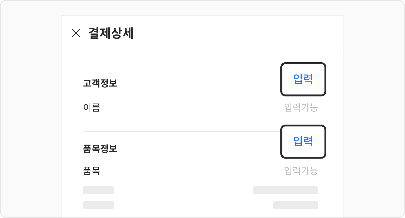 결제내역 에서 고객/품목 정보 관리가 필요한 결제내역 상세로 들어가 주세요.