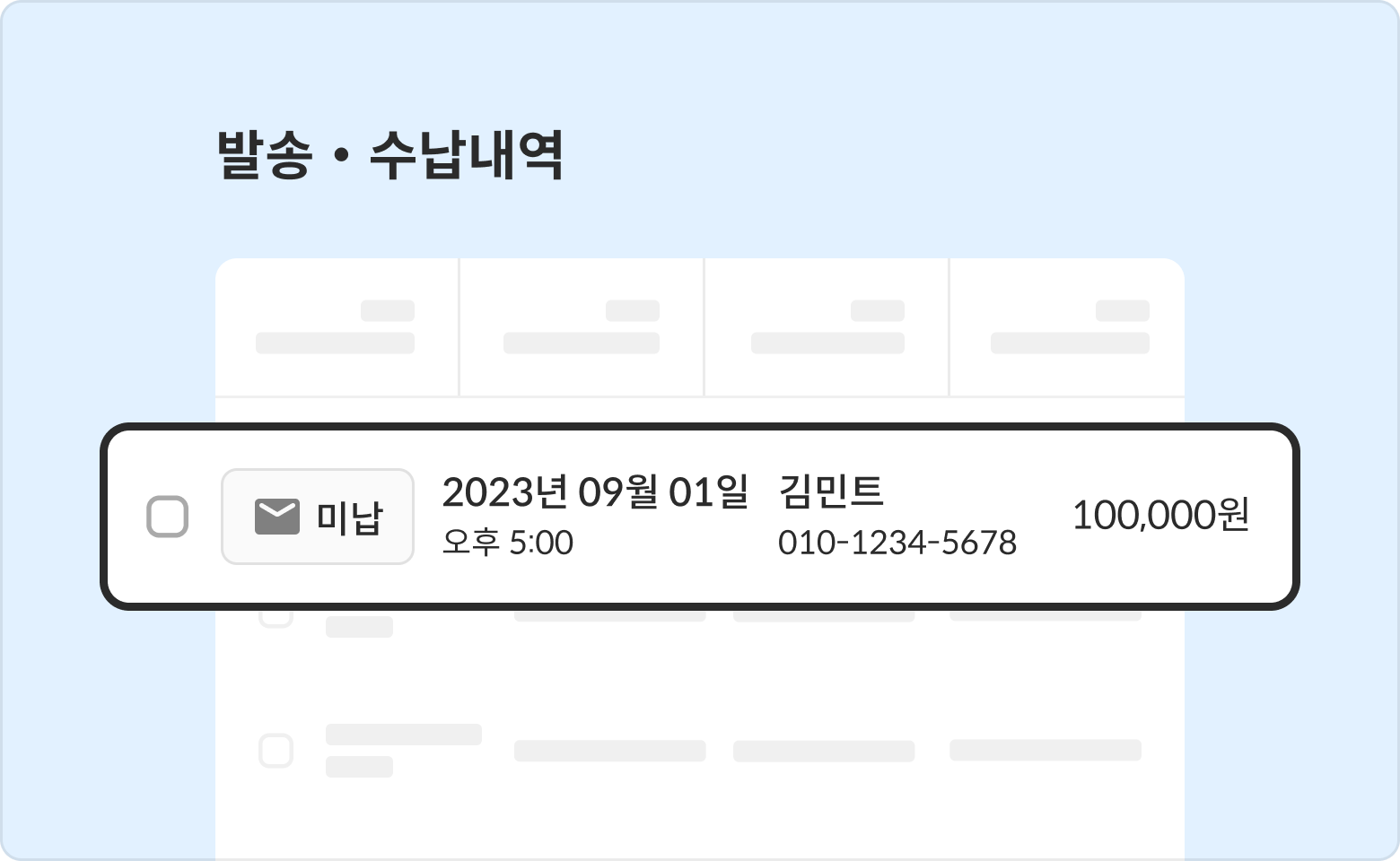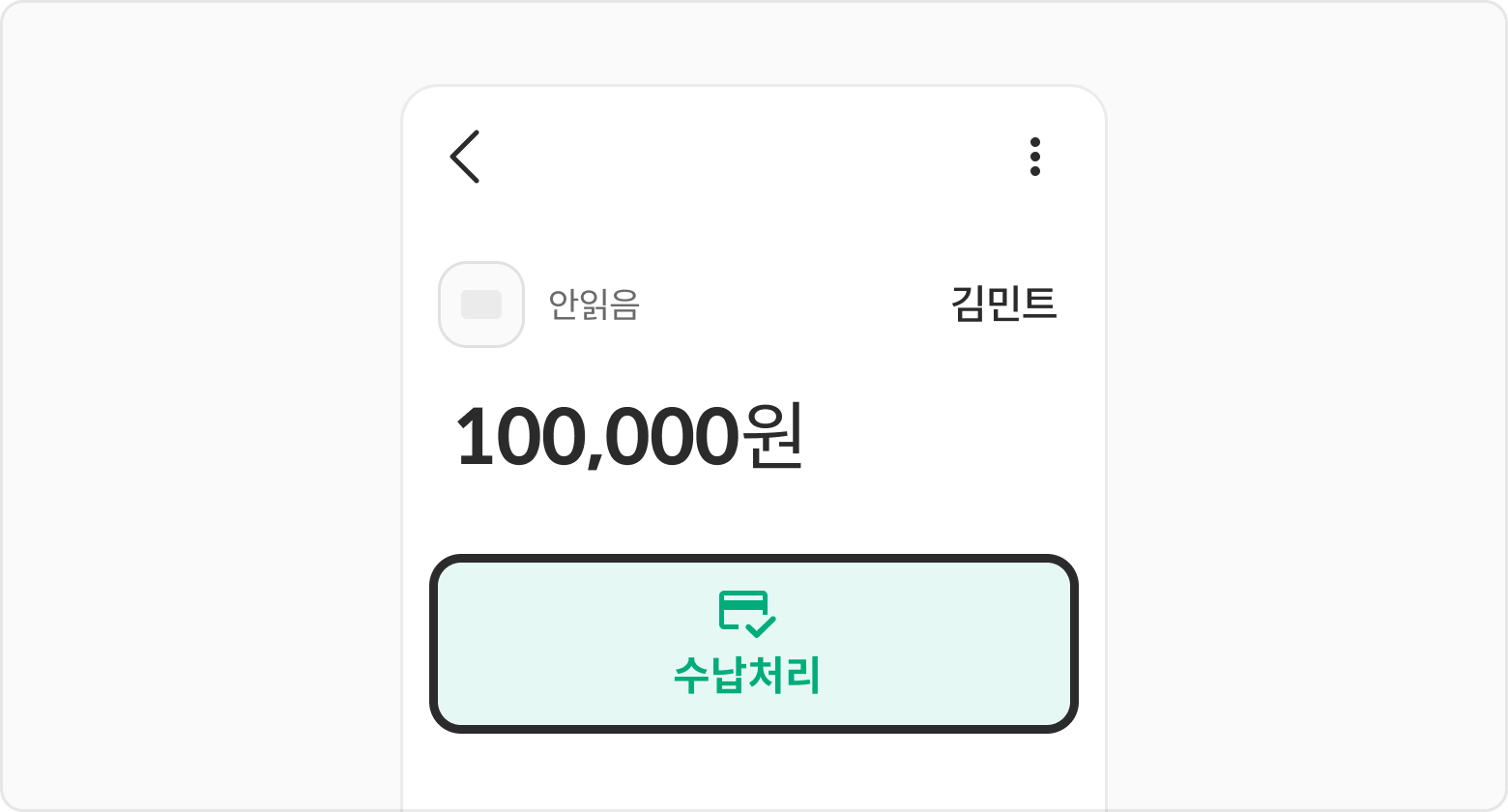 발송∙수납내역 과 결제내역 의 전체 , 청구서 탭에서 수납처리된 내역을 확인할 수 있습니다.