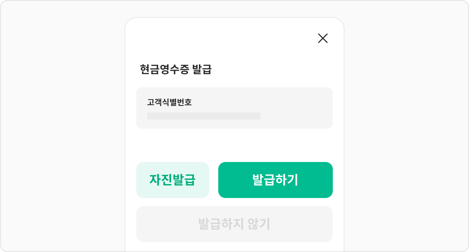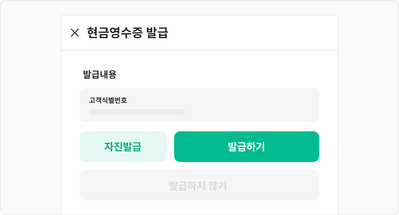발급하기버튼을 클릭해 주세요.청구서에 입력되어 있는 고객 휴대전화번호가 고객식별번호로 자동 입력됩니다. 다른 식별번호를 원하는 경우 삭제 후 휴대전화번호 또는 사업자 등록번호를 입력해 주세요.