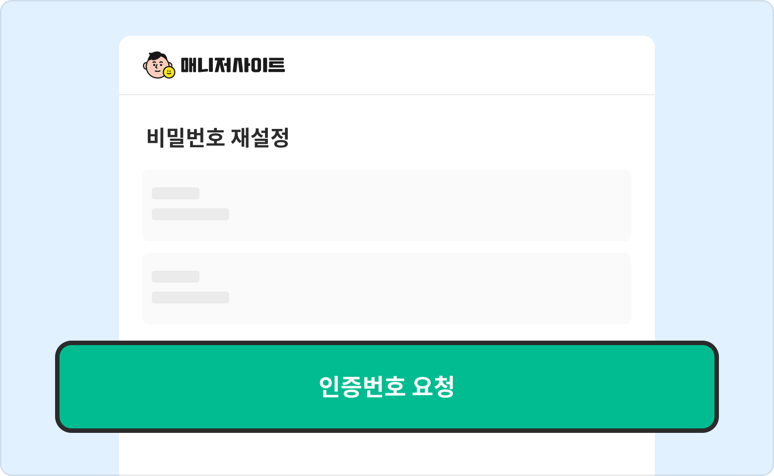 결제선생 매니저사이트 로그인 화면에서 비밀번호 재설정 버튼을 클릭해 주세요.