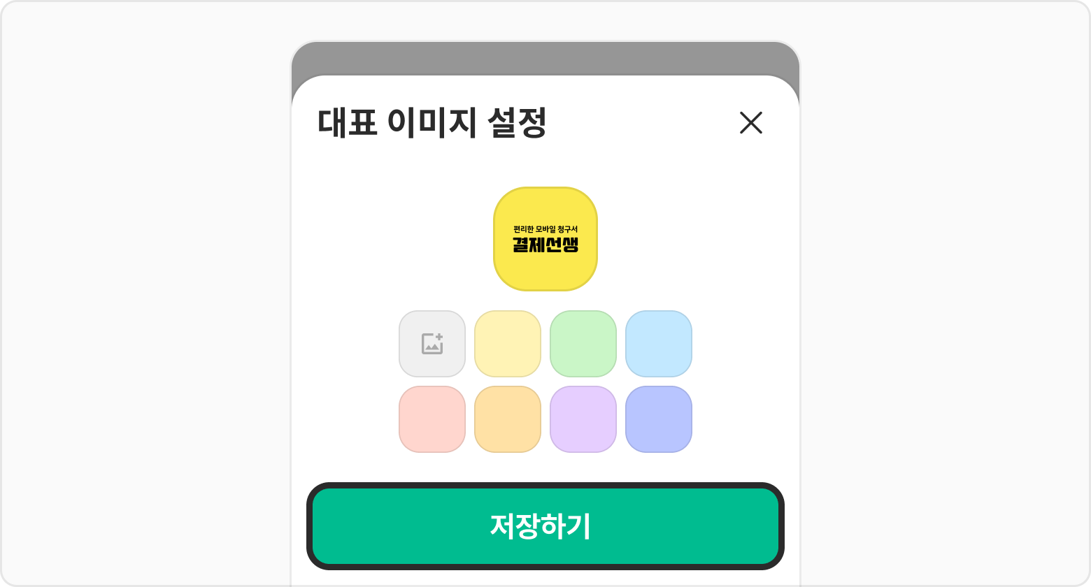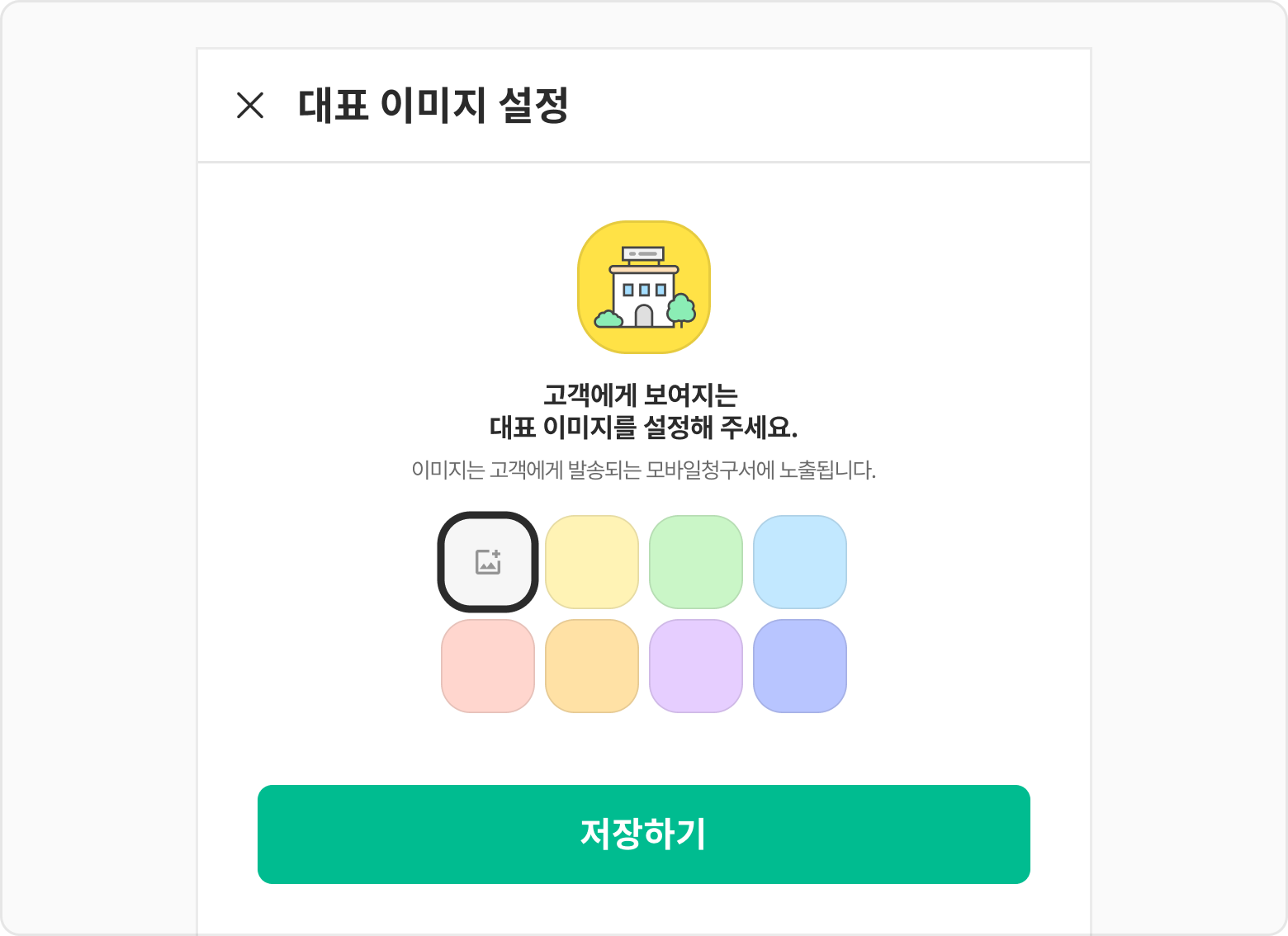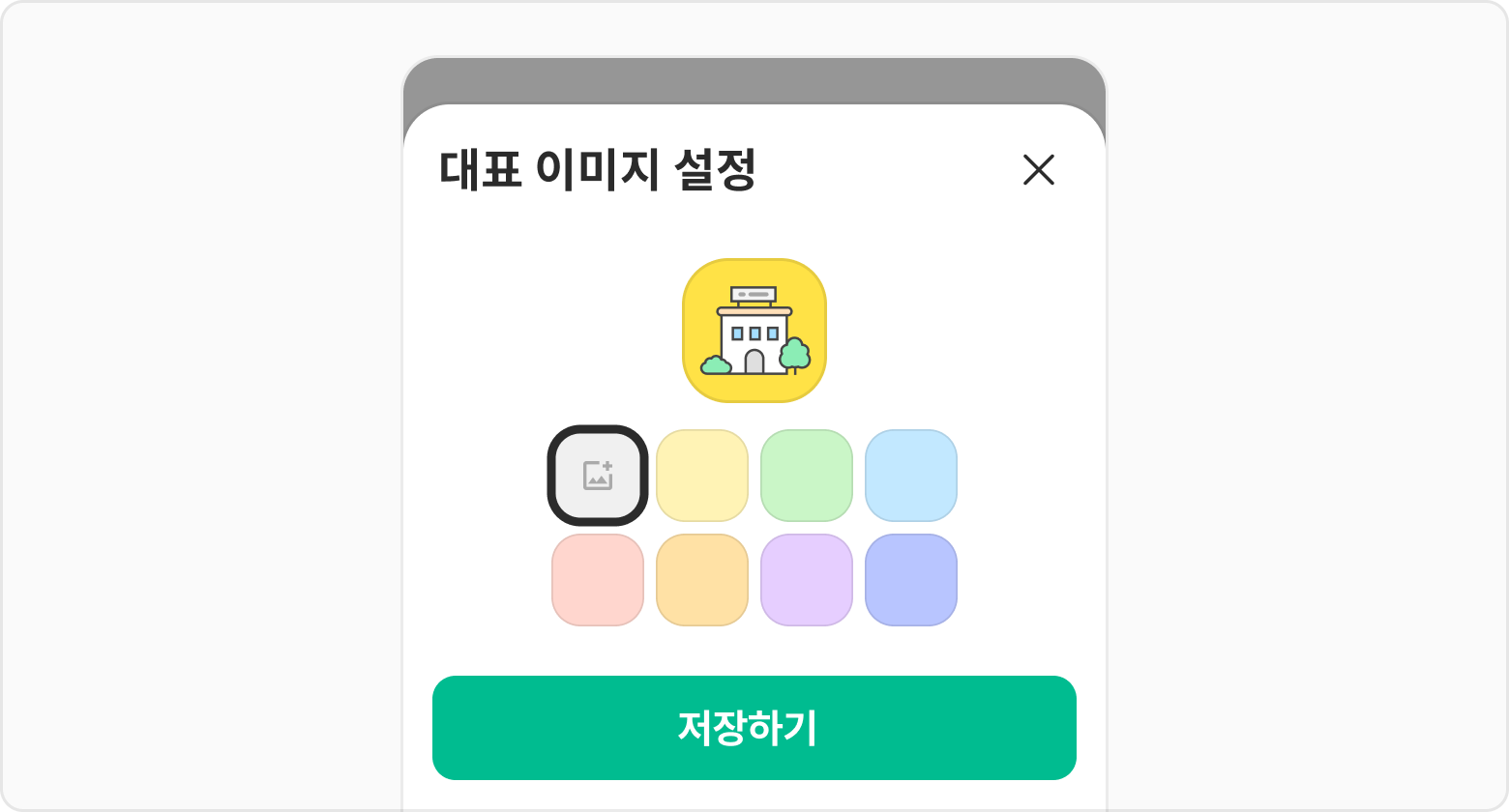 사진 아이콘이 그려진 버튼을 선택하면 직접 업로드 가능하며 다른 기본 이미지를 선택하여 변경 가능합니다.