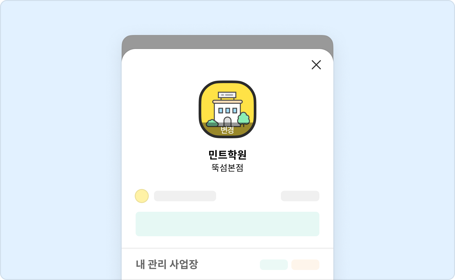 메뉴>사업장 정보또는 홈 상단사업장 정보선택 후 사업장 이미지'변경'버튼을 선택해 주세요.