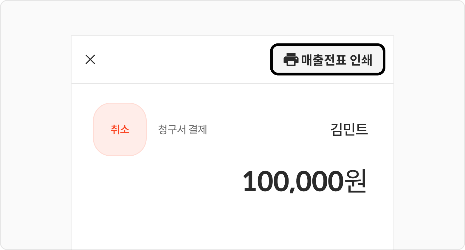 결제취소된 청구서 상세내역의 매출 전표 인쇄 버튼을 클릭해 주세요.