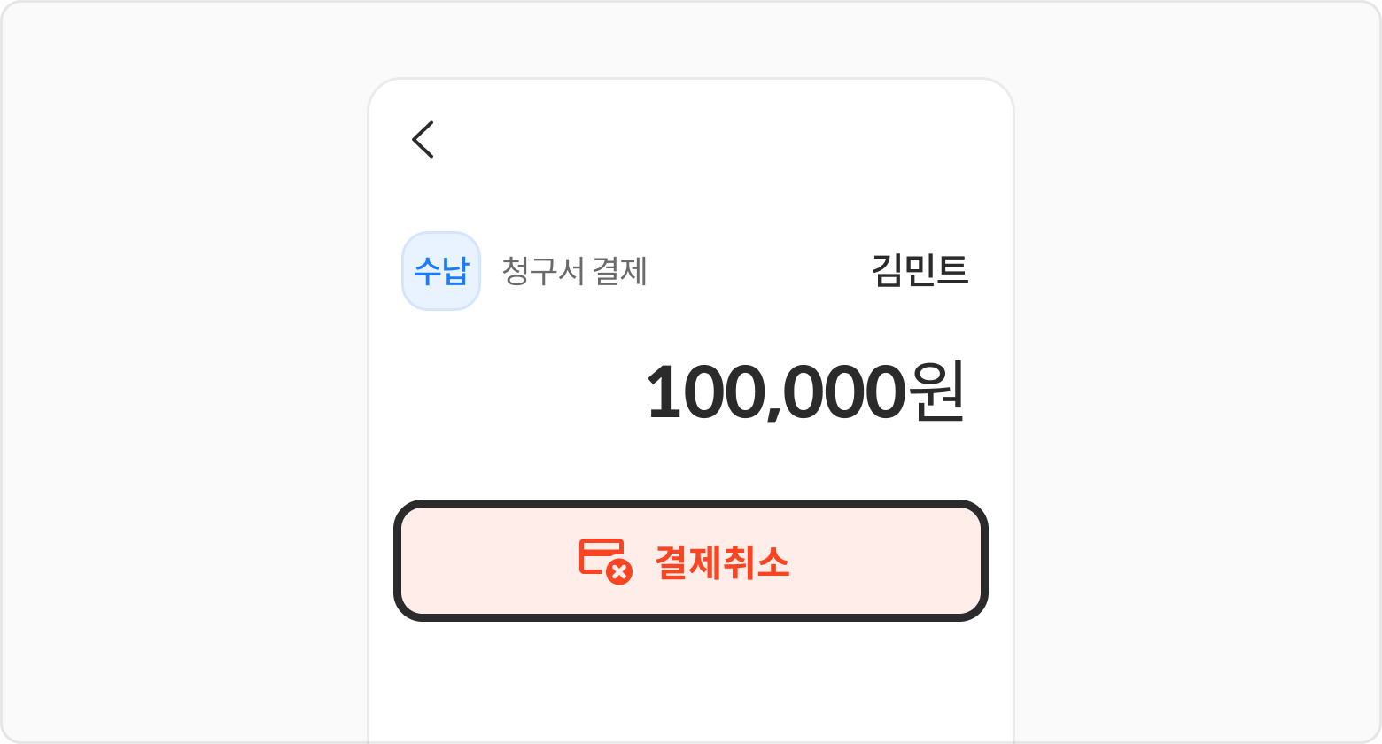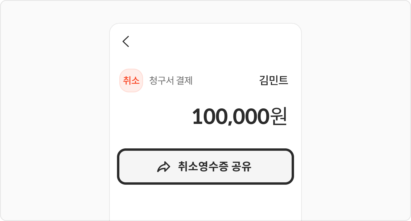 결제취소된 청구서 상세내역의 취소 영수증 공유 버튼을 선택해 주세요.