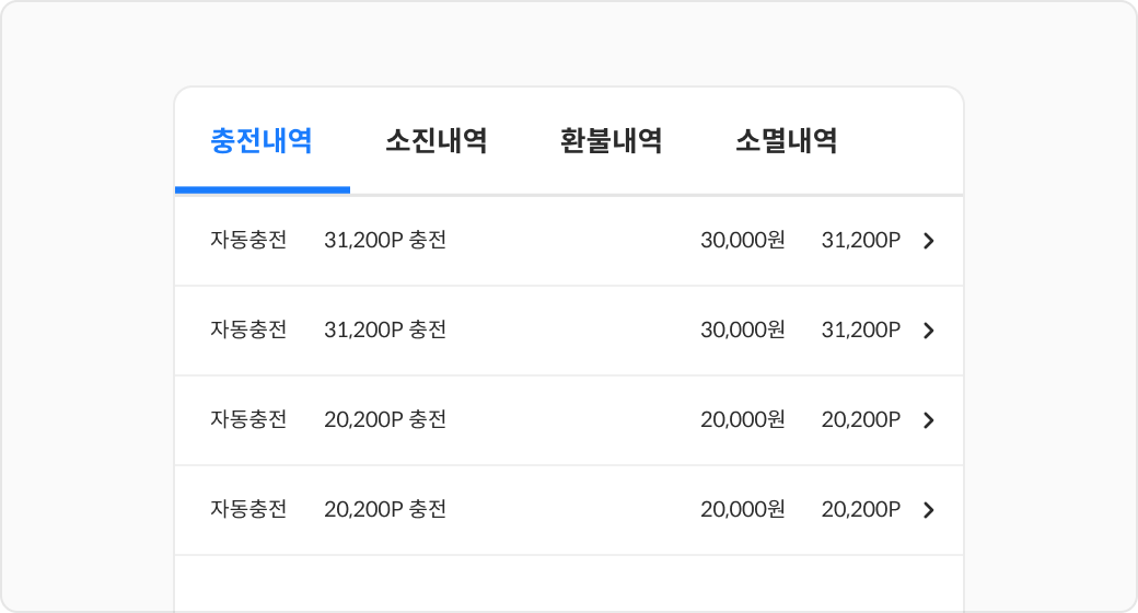 상세 충전 내용 확인을 원하는 리스트를 클릭하면 충전 상세내역을 확인할 수 있습니다.
