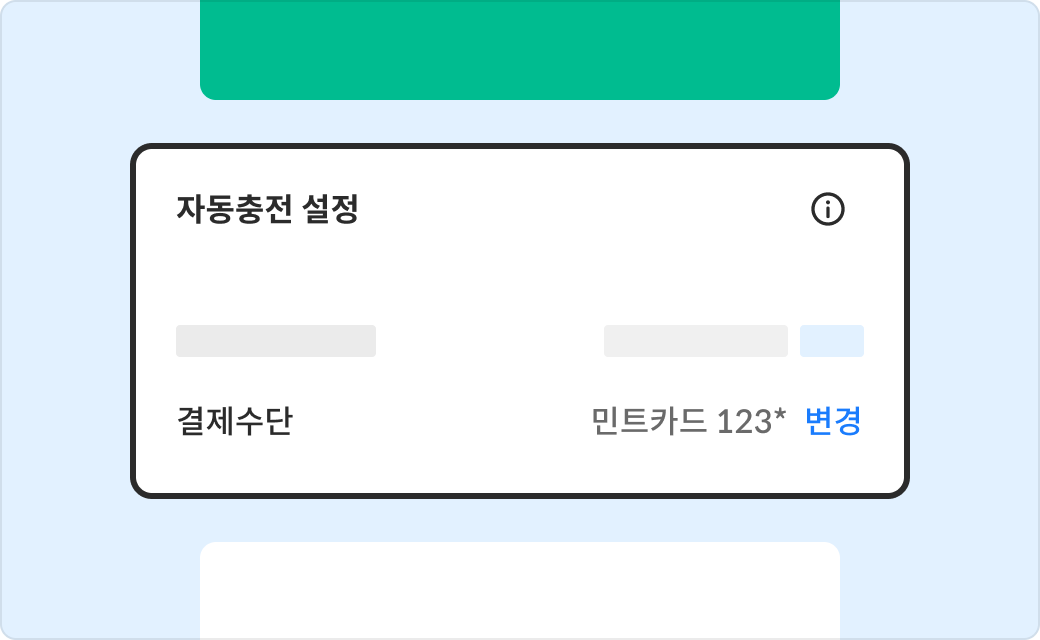 메뉴>쌤포인트 관리 >자동충전 설정 > 결제수단 우측의 변경 버튼을 선택해 주세요.