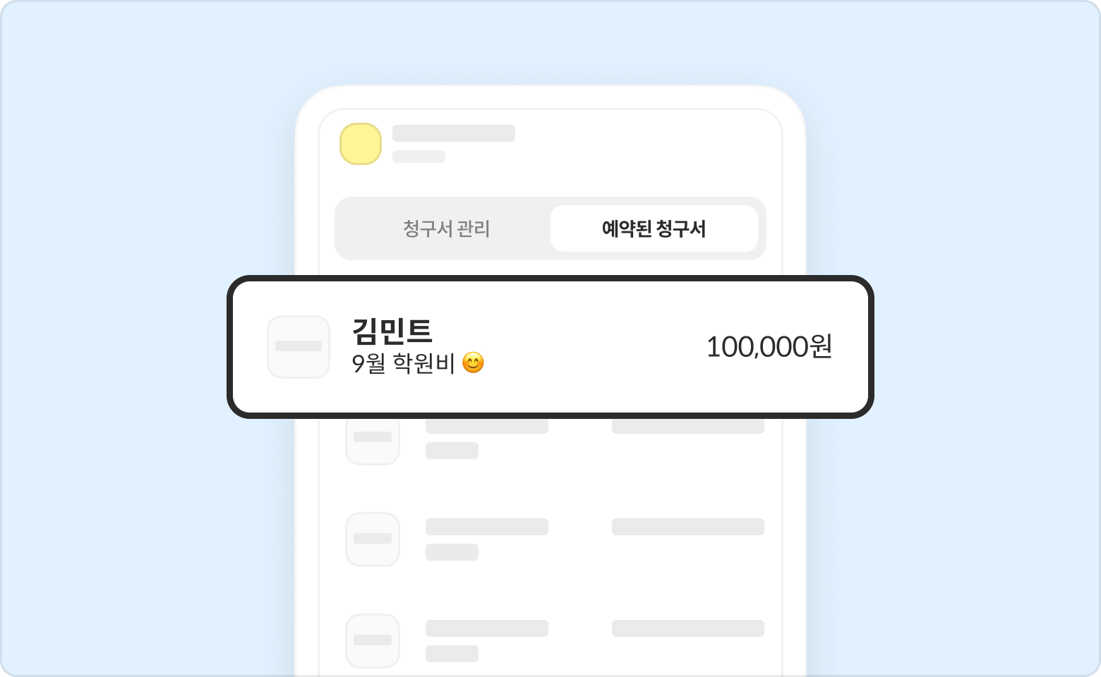 청구서 의 예약된 청구서 탭에서 결제처리가 필요한 예약된 청구서 상세에 들어가 주세요.