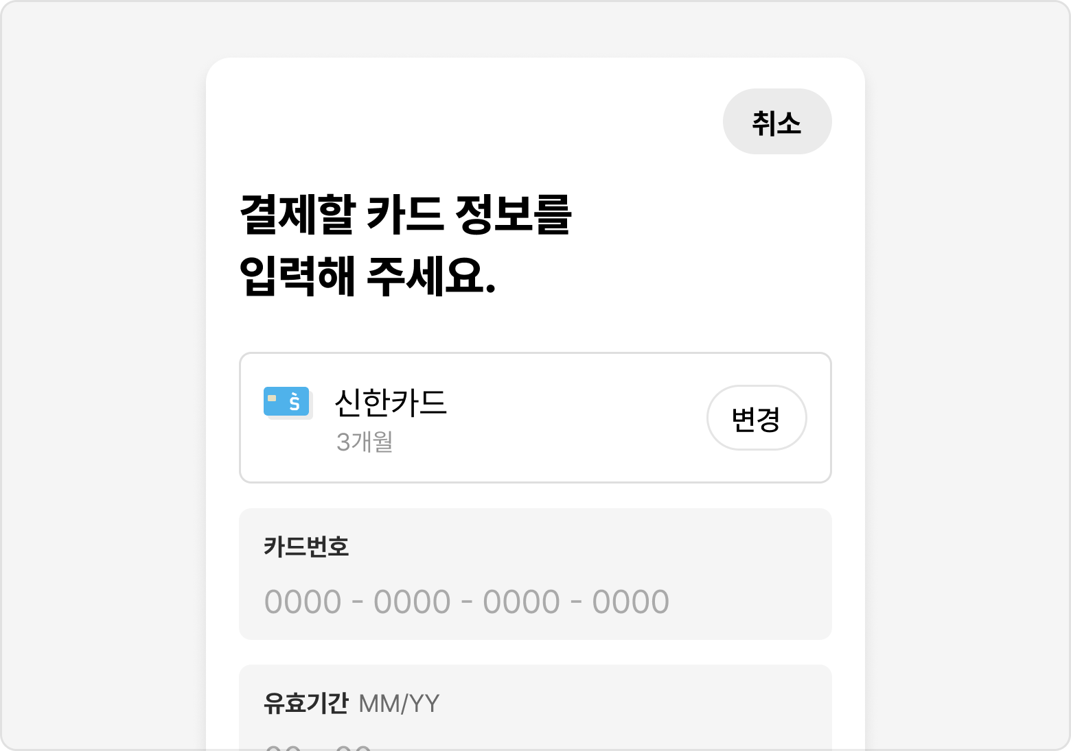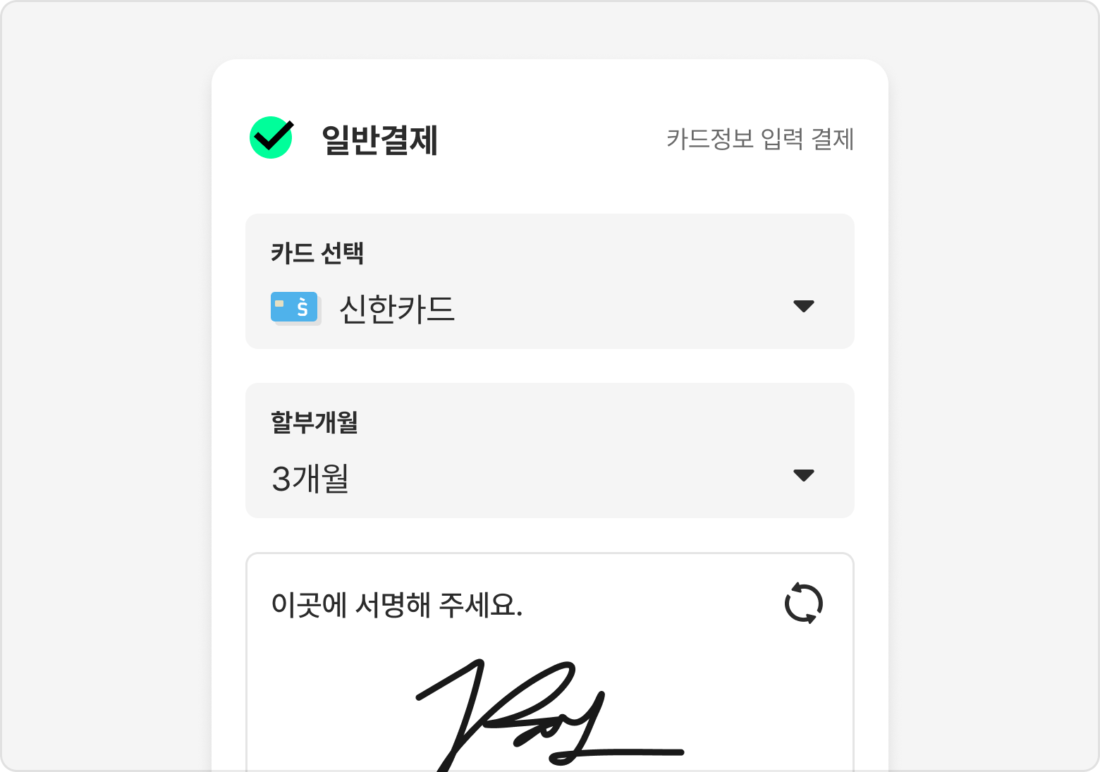 일반결제는 카드 번호를 직접 입력해 사용하는 결제수단입니다.