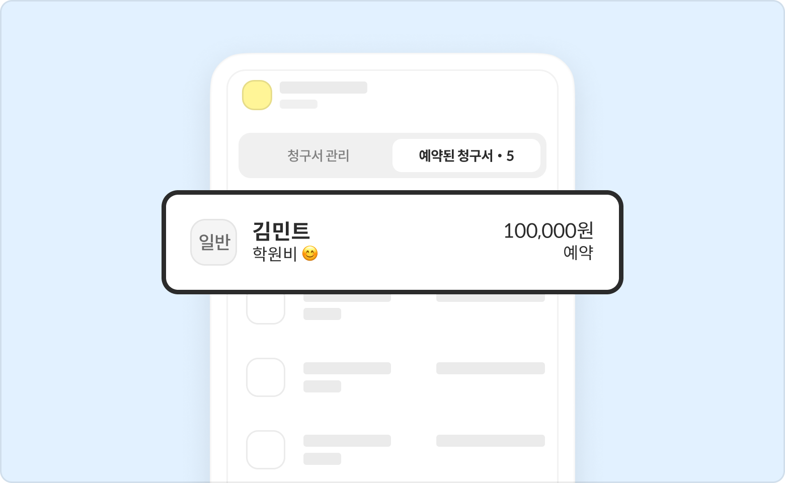 수정할 일반 예약 청구서를 선택해 주세요.
