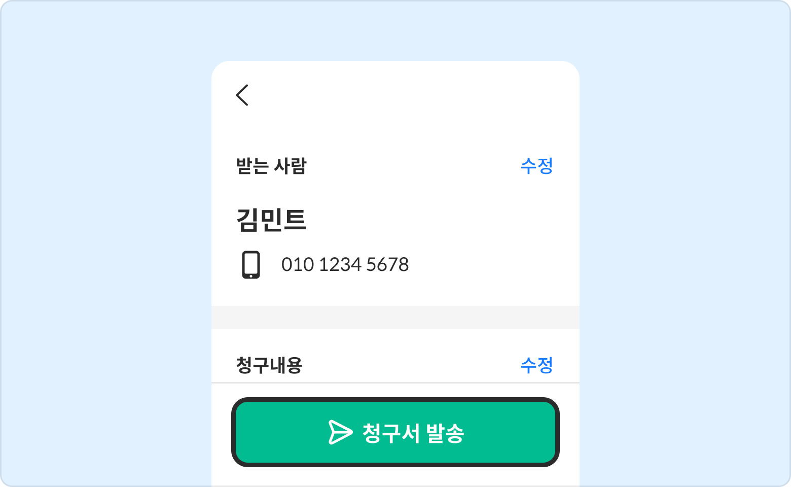 발송할 청구서 상세에 들어간 후 하단의 청구서 발송 버튼을 선택해 주세요.