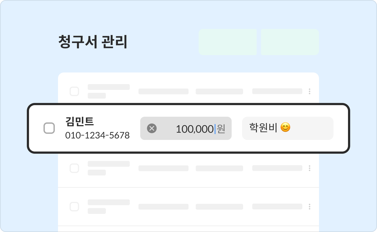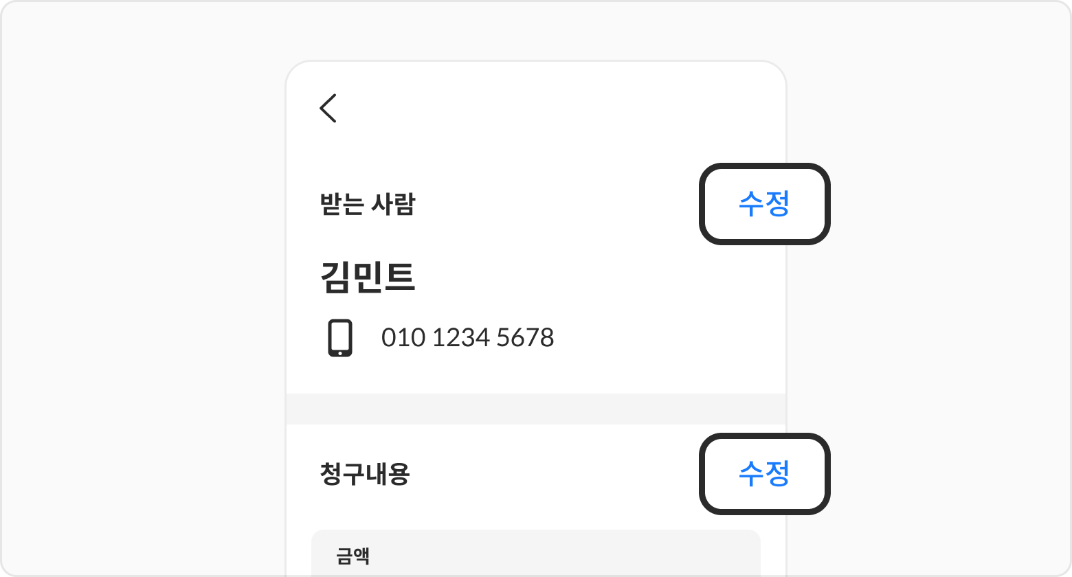 금액을 클릭 후 수정해 주세요.