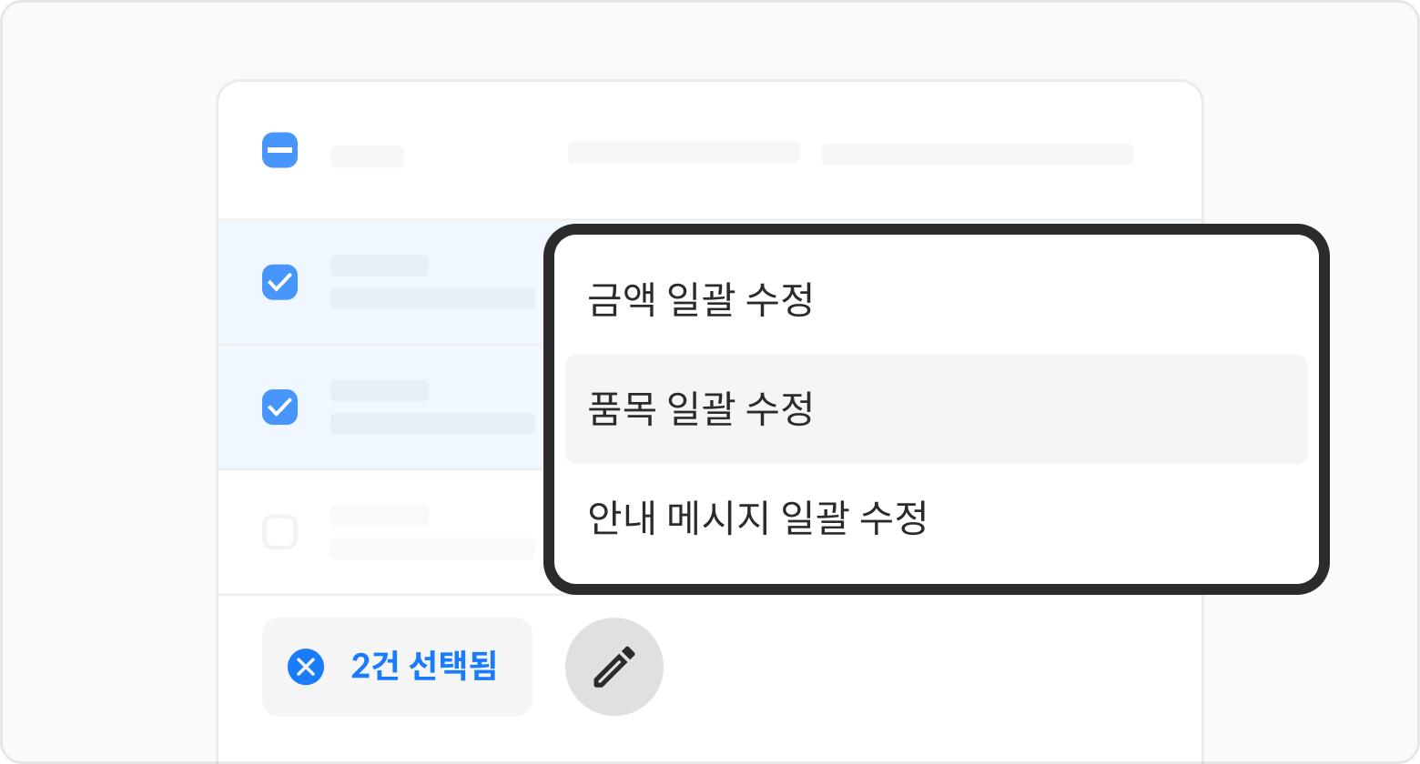 수정할 청구서를 선택해 주세요.
