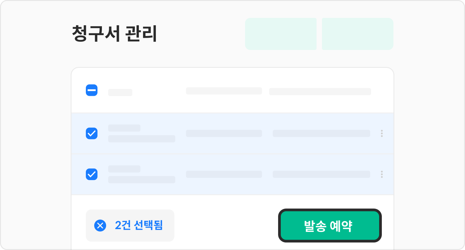 예약할 청구서 좌측의 체크박스 버튼을 선택 후 하단의 예약 버튼을 선택해 주세요. 여러개의 작성된 청구서를 일괄 예약할 수 있습니다.