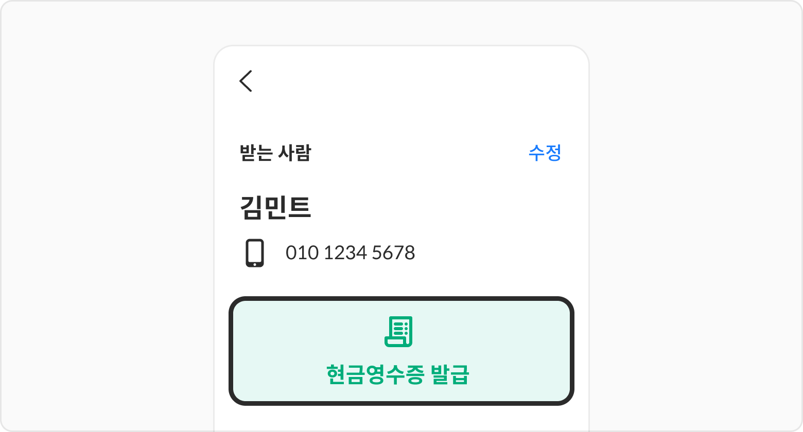 발급정보 입력 후 현금영수증 발급을 완료해 주세요.
