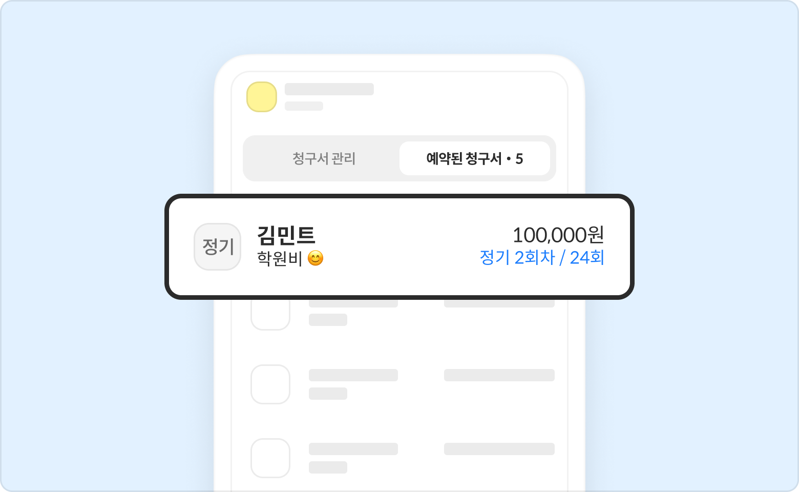 예약된 청구서 목록에서 수정할 목록의 좌측