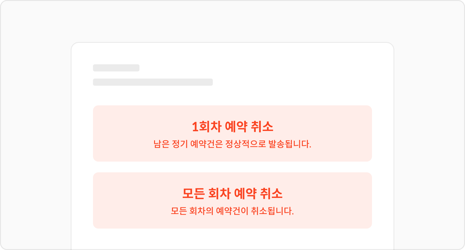 다음 회차 예약만 취소되고 남은 정기예약건은 정상 발송되며 취소된 회자의 쌤포인트만 환원됩니다.