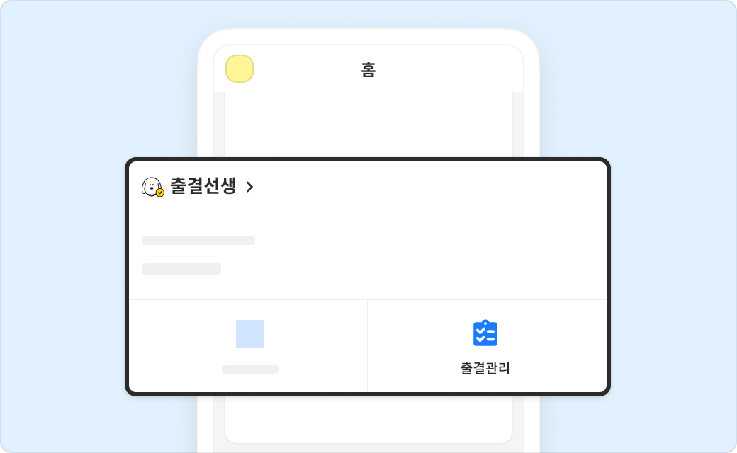 홈에서출결관리버튼을 선택해 주세요.