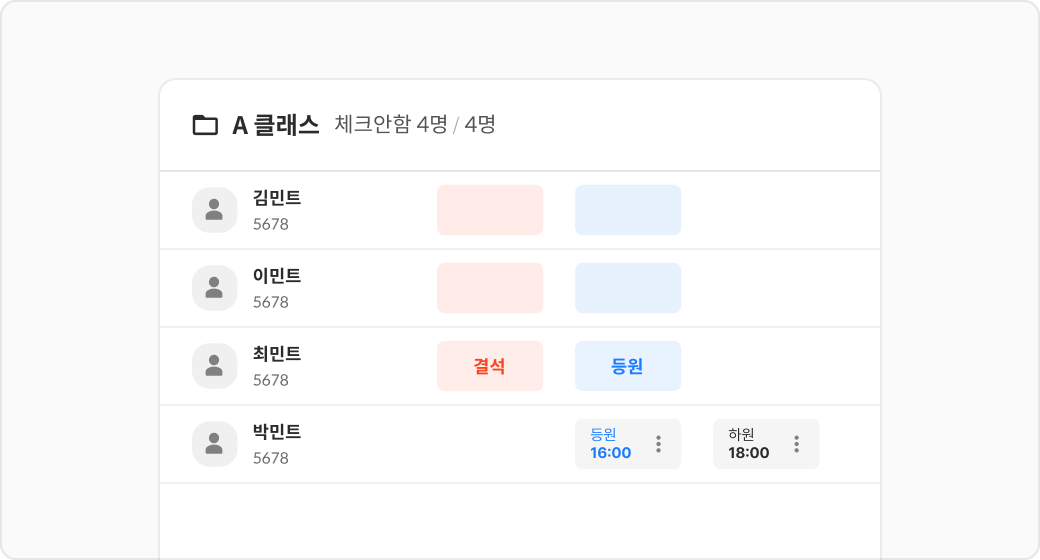 2️⃣ 홈 - 출결선생 관리 - 출결관리