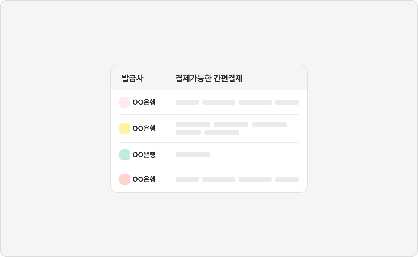 STEP 2. 발급사별 결제 가능한 간편결제 앱을 확인해 주세요.