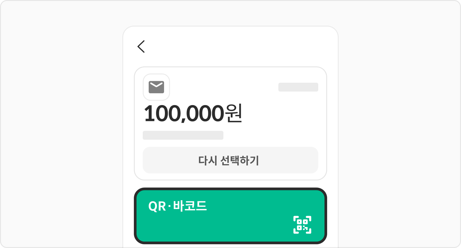 선택한 청구서의 결제금액, 고객정보, 품목정보를 잘 불러왔는지 확인 후 QR·바코드 버튼을 선택해 주세요.