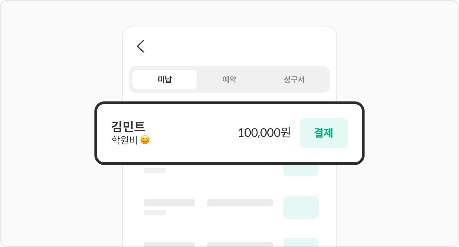 결제내역 메뉴에서 하단의 결제하기 플로팅 버튼을 선택해 주세요.
