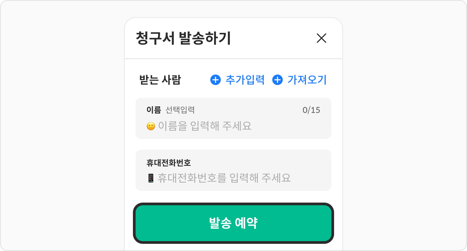 예약할 청구서를 작성 후 발송예약 버튼을 클릭해 주세요.