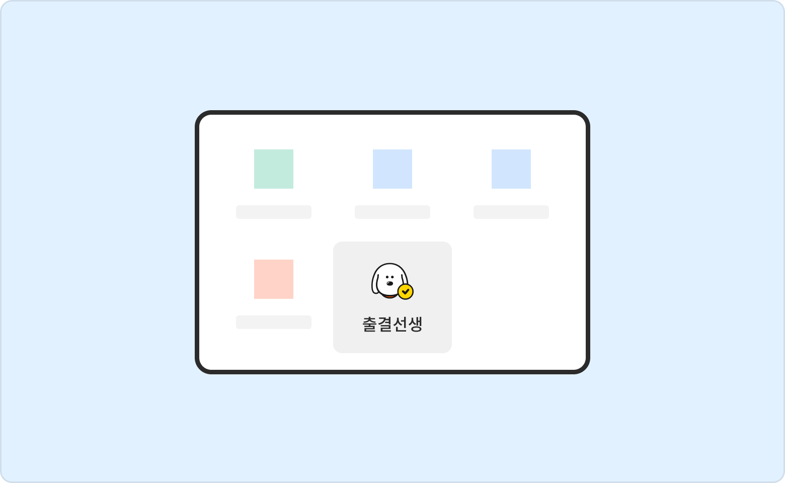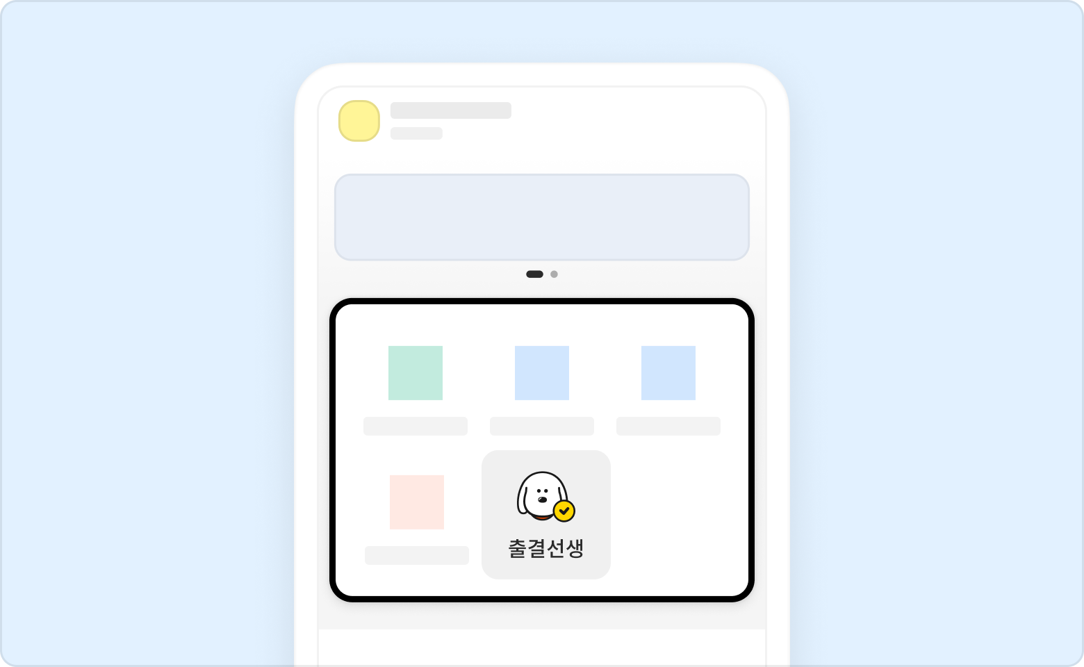 홈 화면에서 출결선생 버튼을 선택해 주세요.