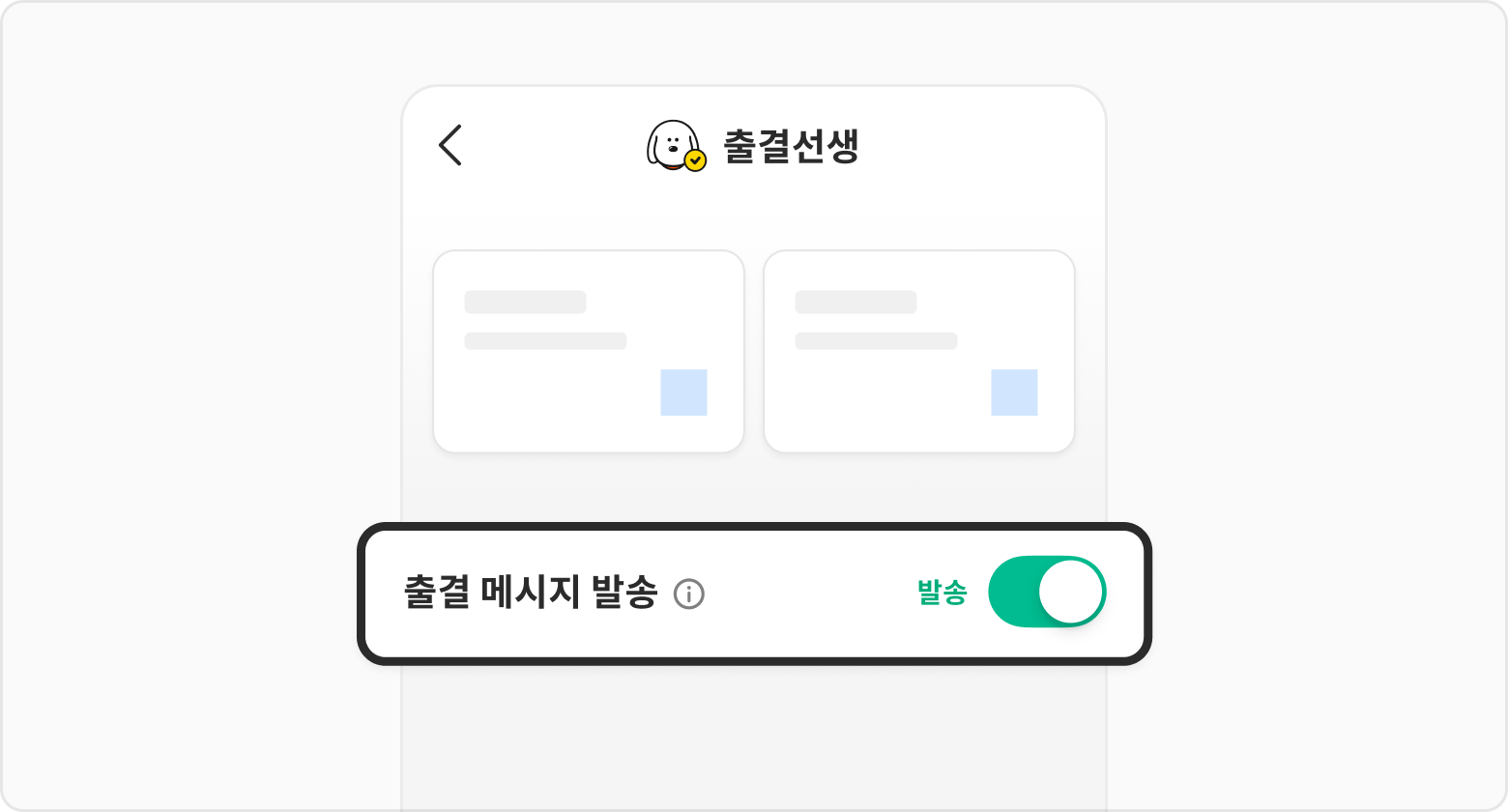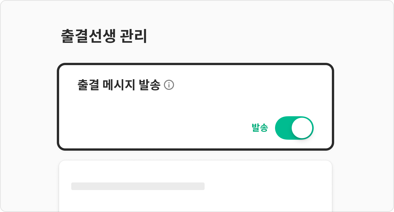 출결메시지 발송 스위치 버튼을 선택해서 출결 메시지 발송 여부를 선택할 수 있습니다.