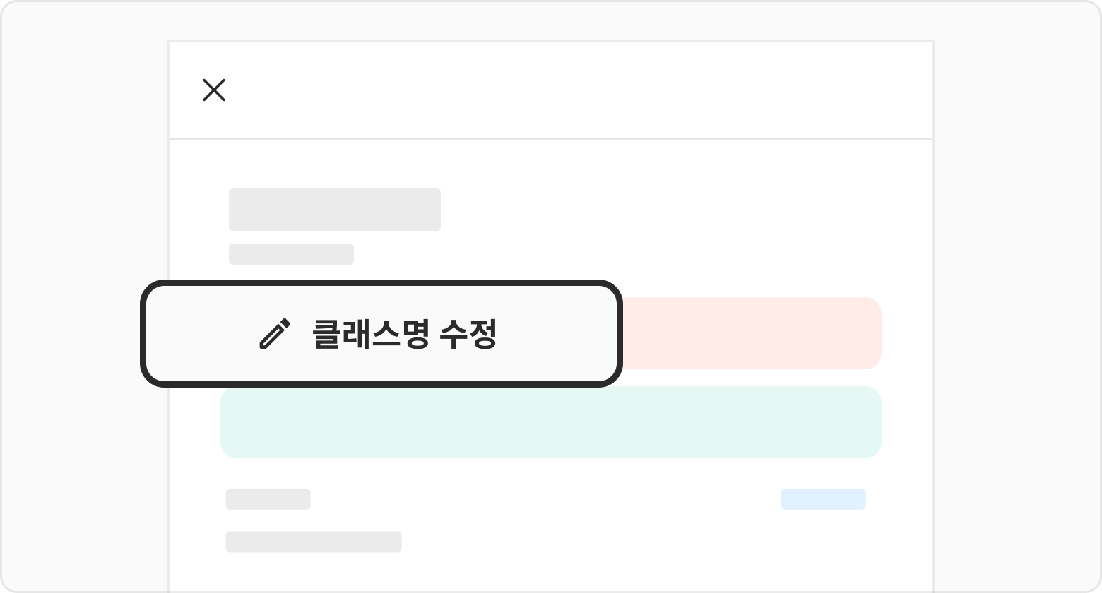 클래스 상세화면에서 상단에클래스명 수정버튼을 클릭해 주세요.클래스명 수정화면에서 클래스 이름을 수정하고 하단에확인버튼을 클릭해 주세요.