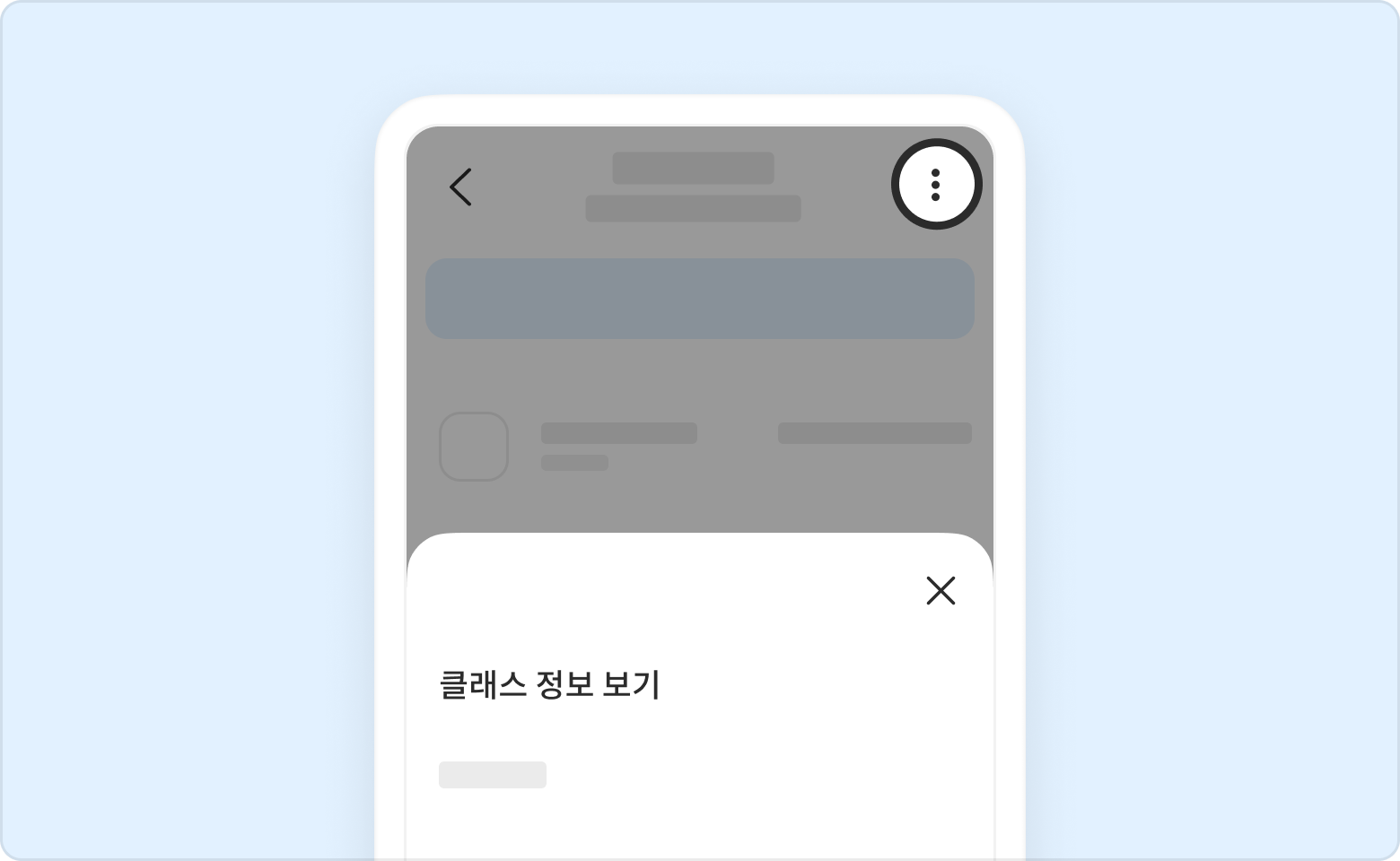 학생 > 클래스 탭 에서 수정할 클래스를 선택하고 오른쪽 상단에 더보기 > 클래스 정보 보기 버튼을 선택해 주세요.