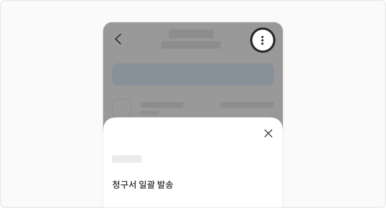 1️⃣ 클래스 상단 더보기 버튼 선택 후 청구서 일괄 발송 버튼을 선택해 주세요.