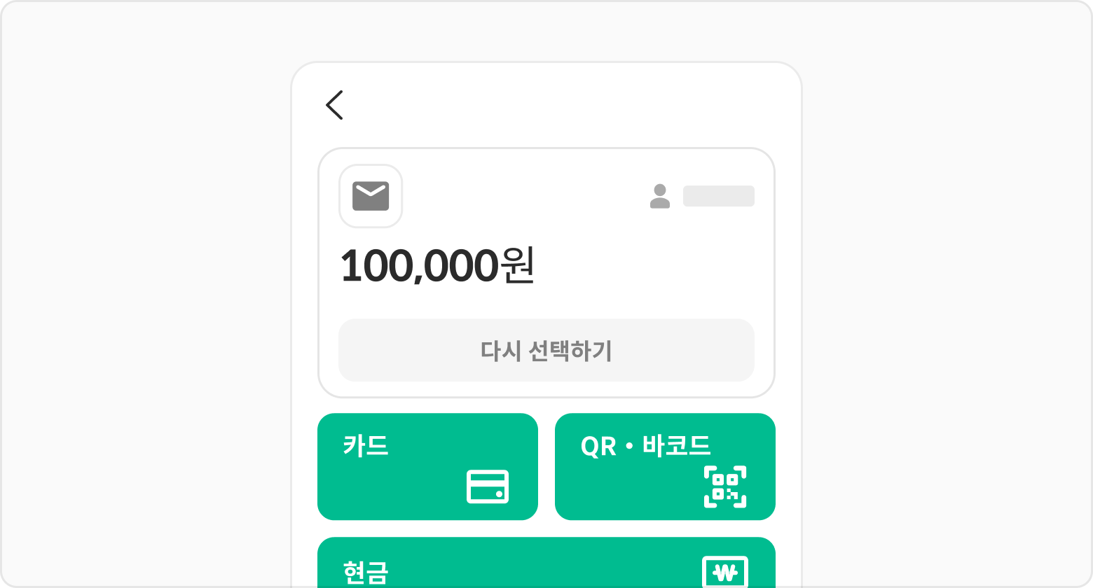 고객정보, 품목정보, 결제금액 변경이 불가능합니다. 다른 정보로 결제가 필요한 경우 하단의 다시 선택하기 버튼을 선택해 주세요.