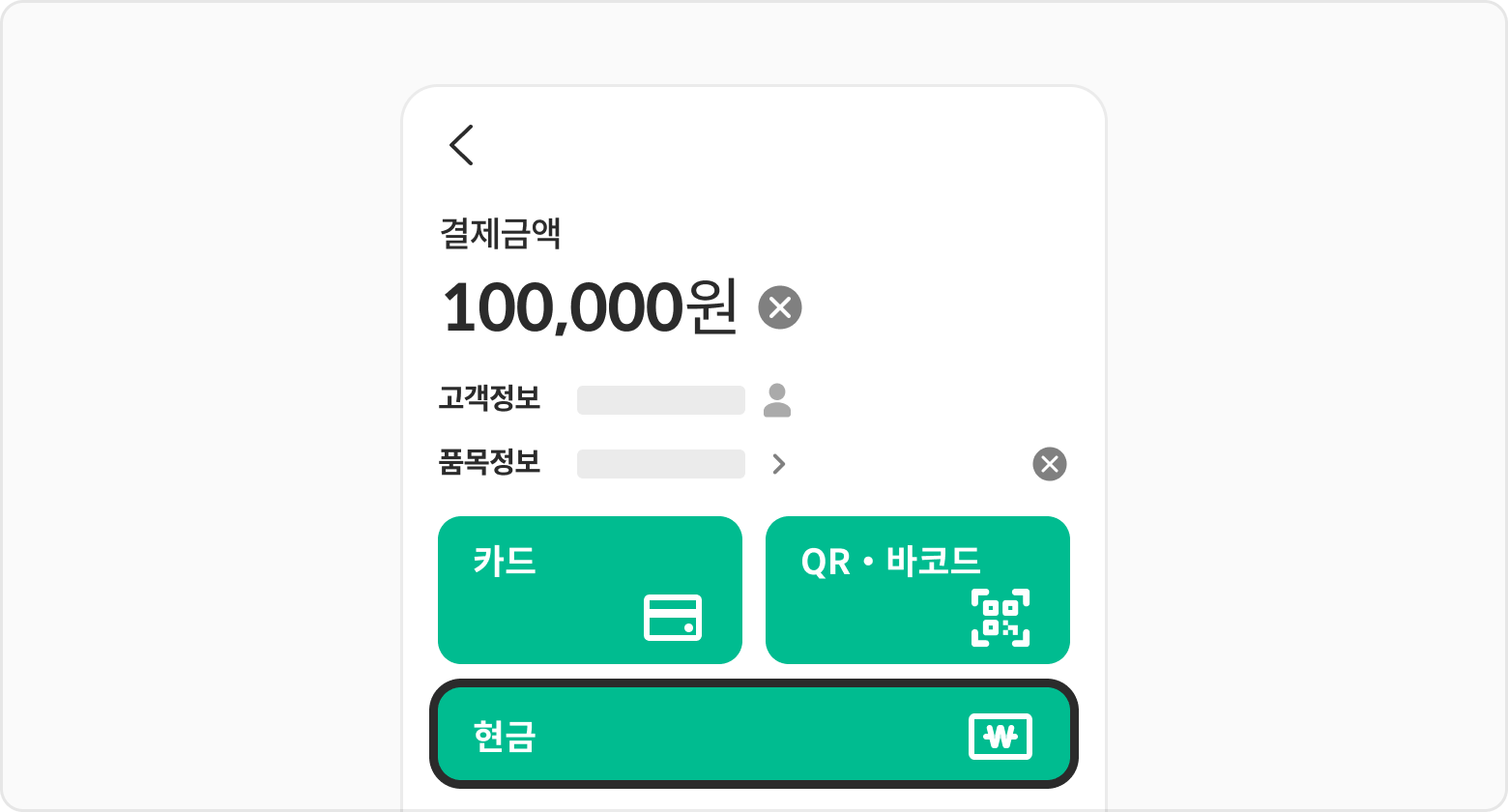 현금버튼을 선택해 주세요.