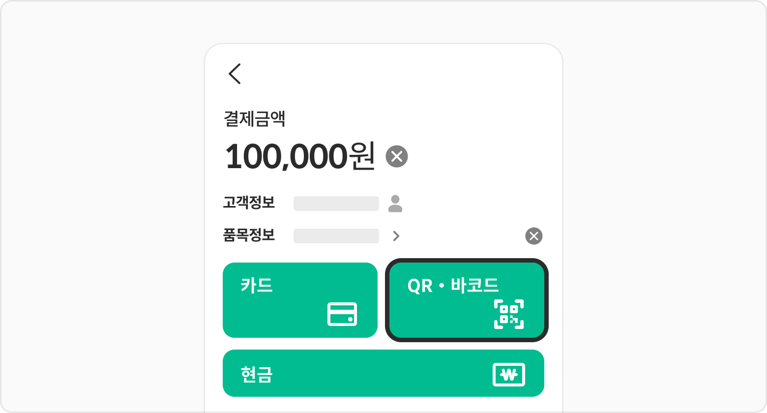 선택한 청구서의 결제금액, 고객정보, 품목정보를 잘 불러왔는지 확인해 주세요.
