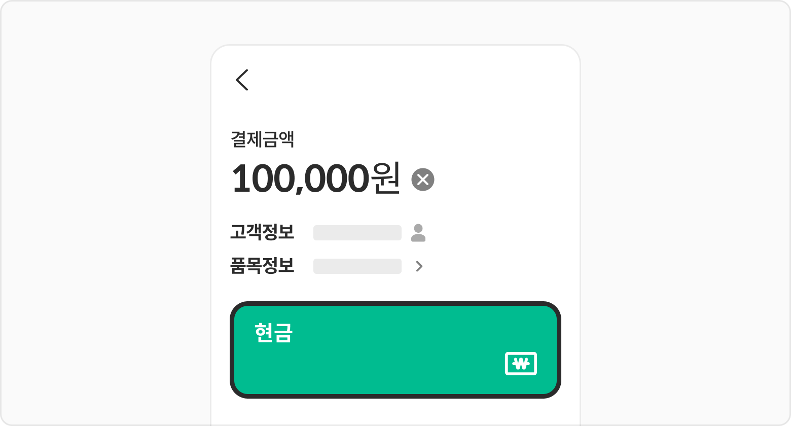 품목정보 없이 결제금액만 입력해도 결제가 가능하며, 이후 결제내역 상세에서 직접 추가 및 수정이 가능합니다. 고객/품목 정보 관리하기 (바로가기→) 문서를 확인해주세요
