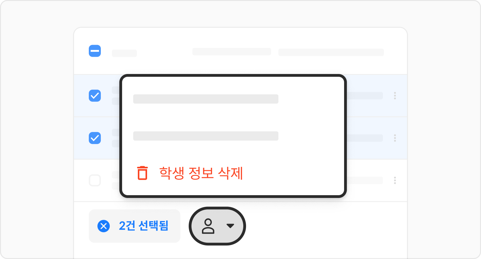 학생 > 전체 학생 > 삭제할 학생 목록을 선택해 주세요.