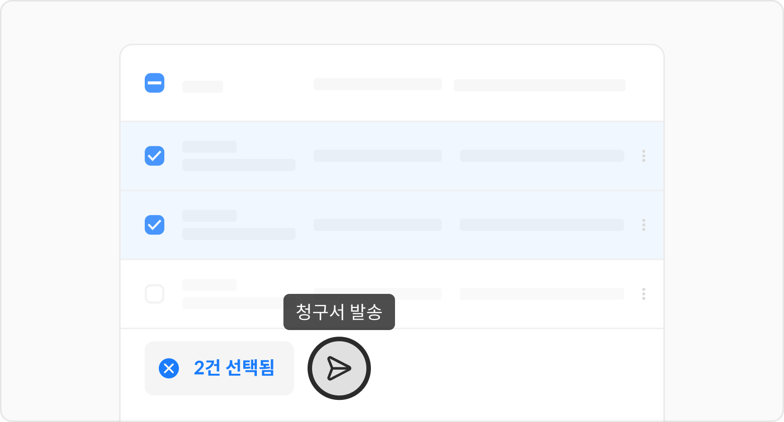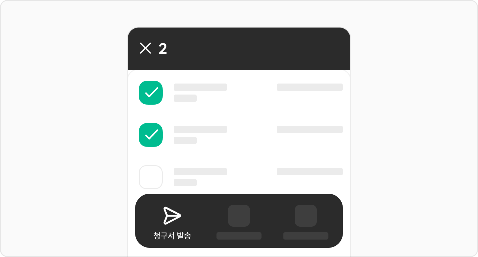 체크박스를 선택 후 하단의청구서 발송아이콘을 선택해 주세요.