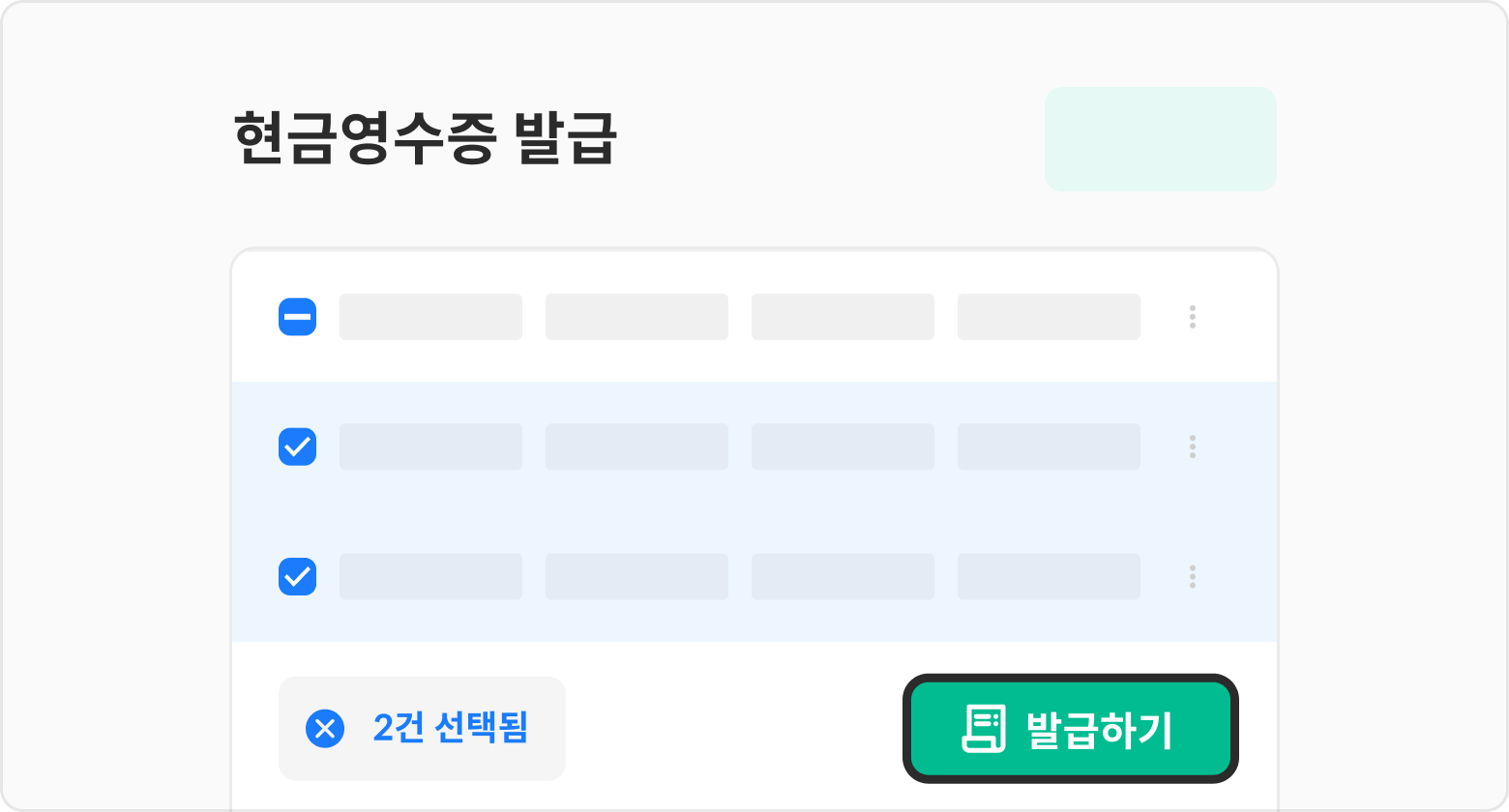 발급이 필요한 현금영수증 목록 좌측의