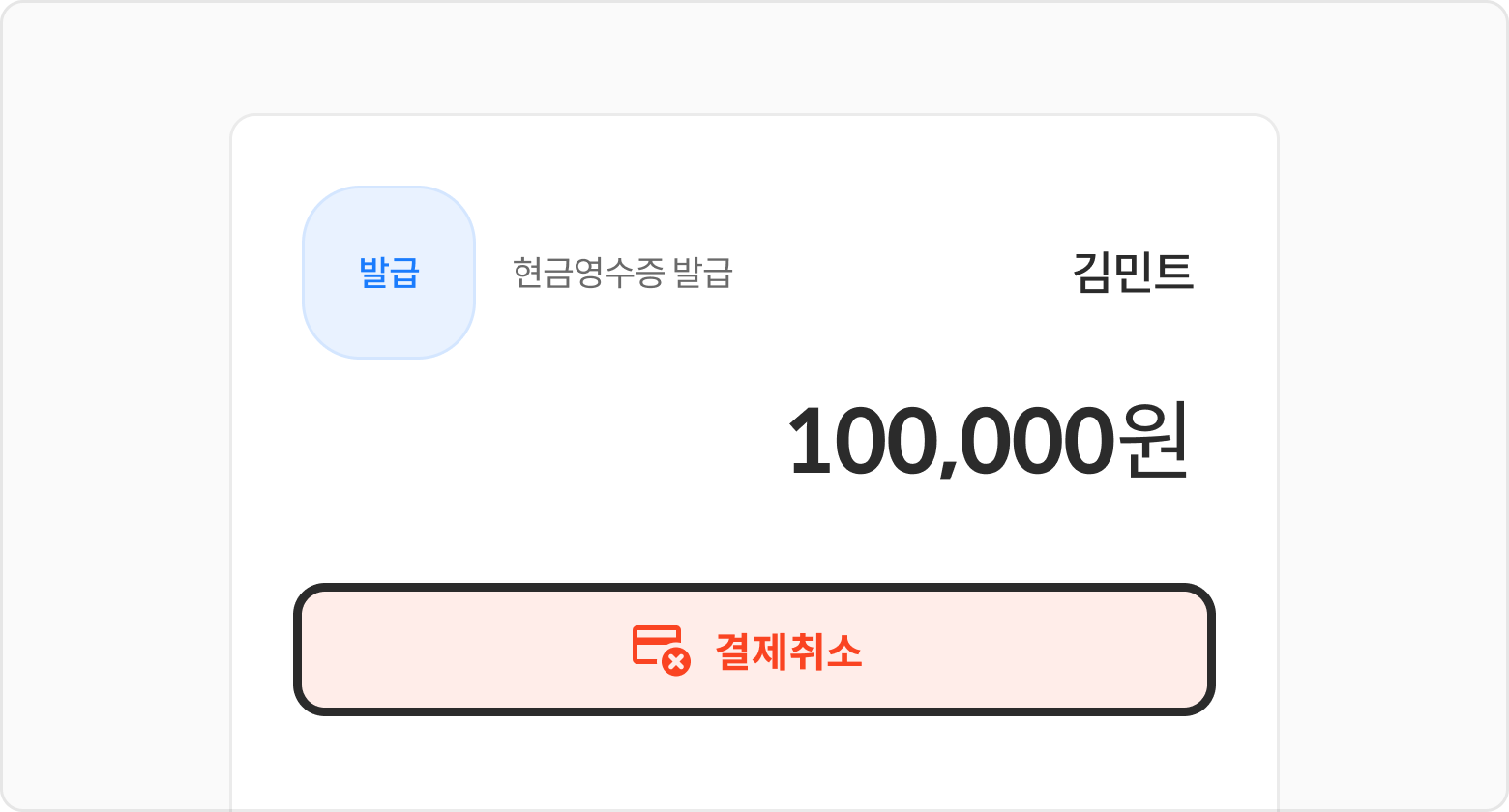 발급내역상세 화면에서 결제취소 버튼을 클릭하면 발급 취소처리가 완료 됩니다.