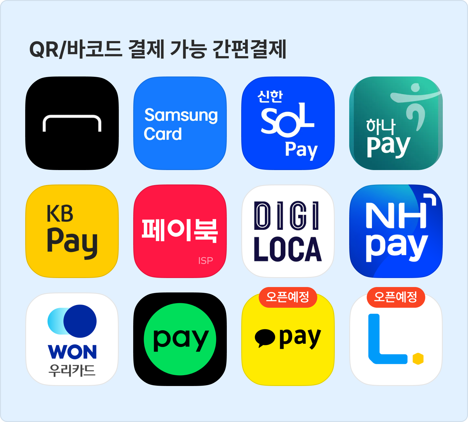 카카오페이(오픈예정), 엘페이(오픈예정)
