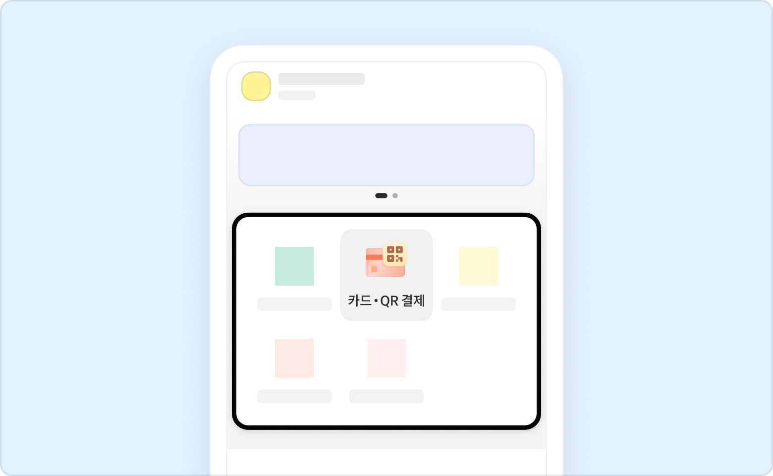 홈 에서 카드・QR결제 퀵메뉴를 선택해 주세요.