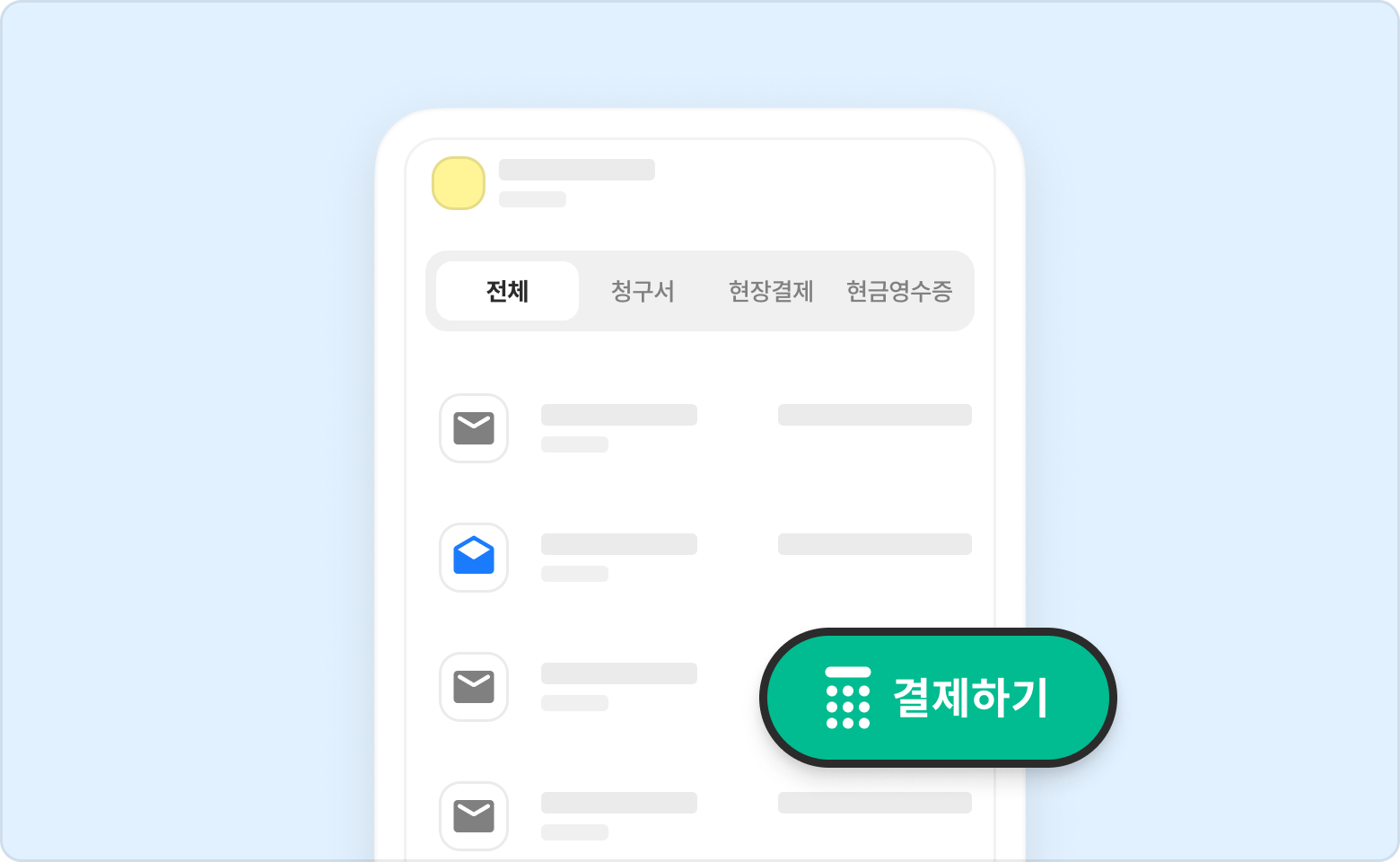 결제내역> 전체 또는 현장결제 탭에서 결제완료된 내역을 확인할 수 있습니다.